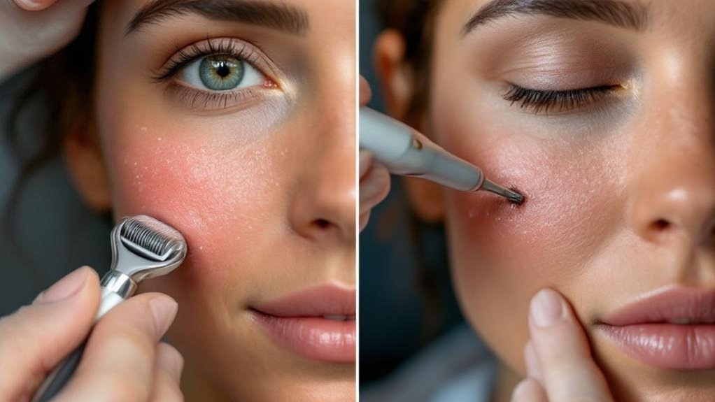 Microneedling creates controlled micro-injuries that stimulate the skin’s natural healing response, boosting collagen production. We’ve seen impressive results for acne scars, fine lines, wrinkles, and uneven texture through this minimally invasive procedure. Professional treatments offer deeper penetration with medical-grade equipment, while at-home devices provide milder effects. Post-treatment care includes gentle skincare and strict sun protection. Understanding the full process helps determine if this transformative treatment suits your specific skin concerns.